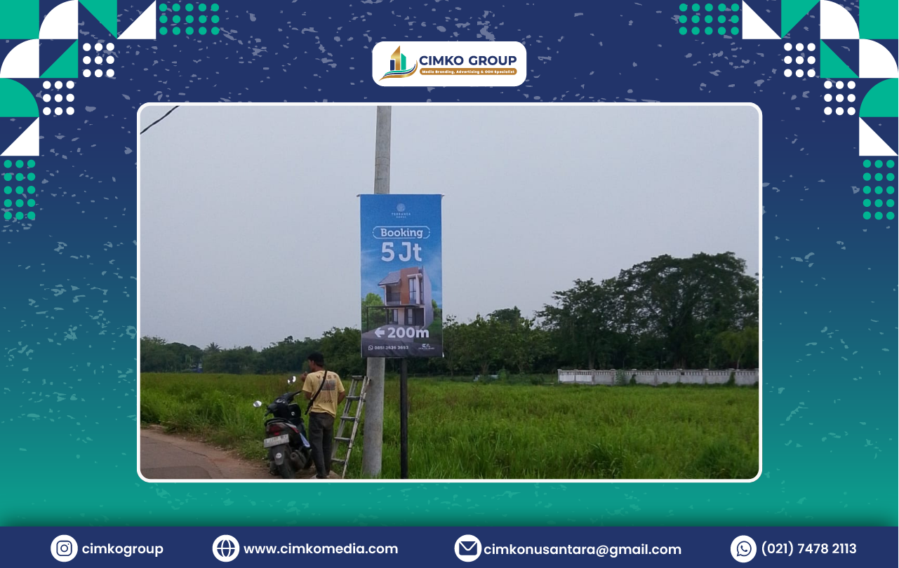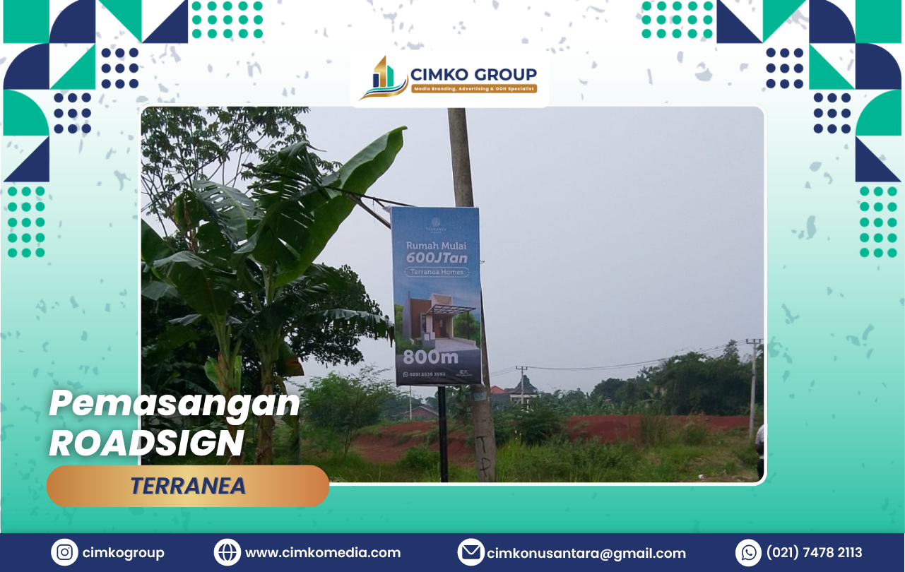 CIMKO Group kembali dipercaya untuk melakukan pemasangan media promosi outdoor berupa roadsign untuk proyek perumahan Terranea. Proses pemasangan ini dilakukan dengan perencanaan matang guna memastikan posisi strategis, visibilitas maksimal, serta ketahanan material terhadap kondisi lingkungan.
